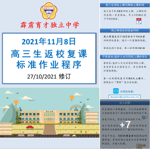 最新 育才新闻新闻讯息【高三生返校复课标准作业程序】27/10/2021 修订