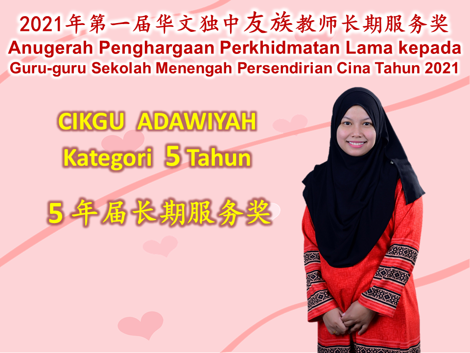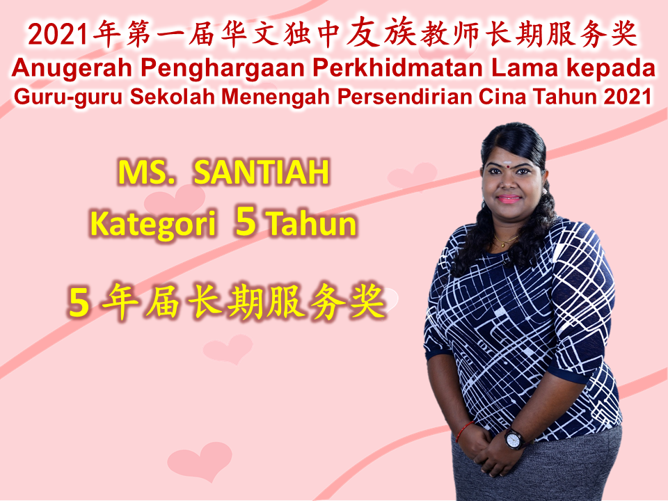 恭喜本校4名友族教师获得董总“2021年第一届华文独中友族教师长期服务奖”。 Congratulations to our four teachers who have received the Long Service Award 2021 from Dong Zong.