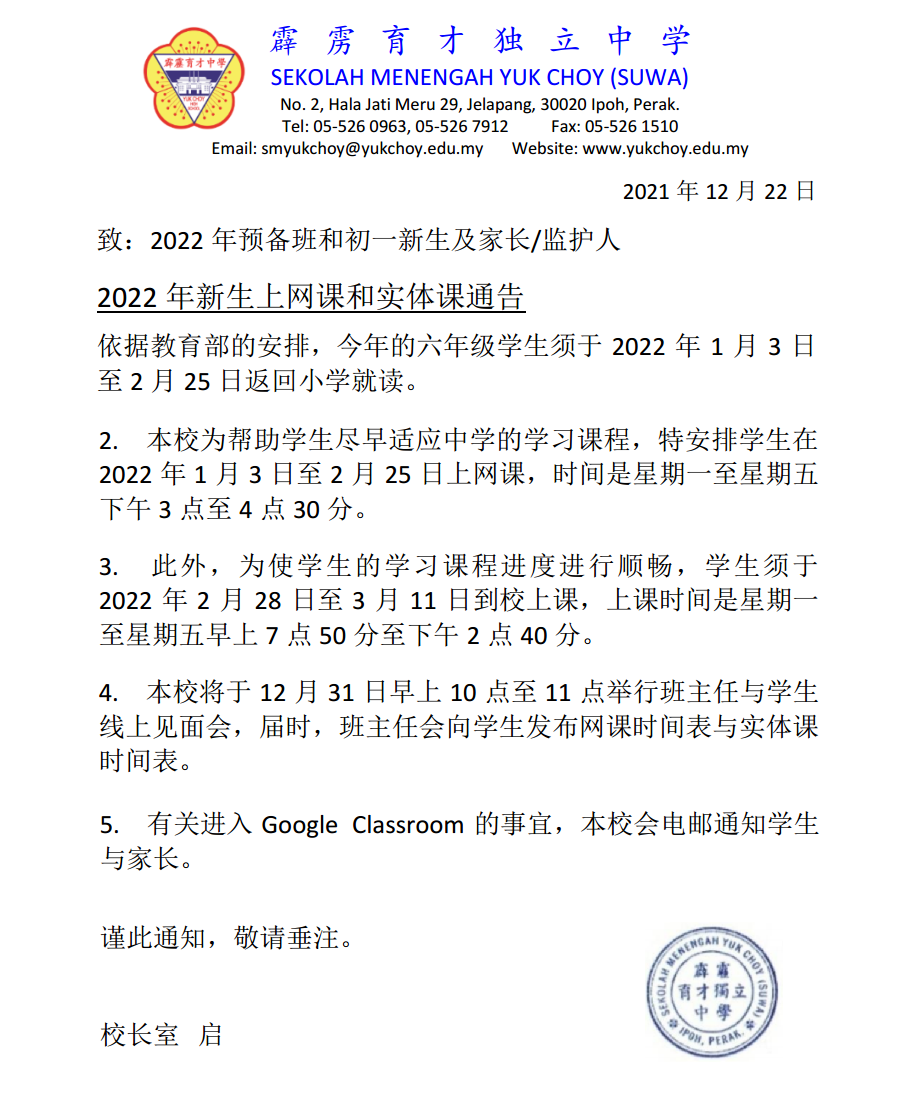 年新生上网课和实体课
