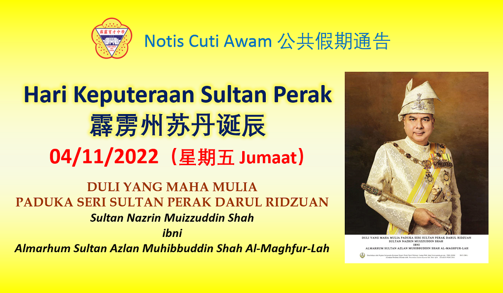 日】公共假期:霹雳州苏丹诞辰