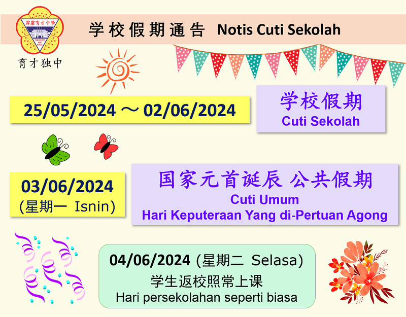 【通告】学校假期和国家元首诞辰公共假期