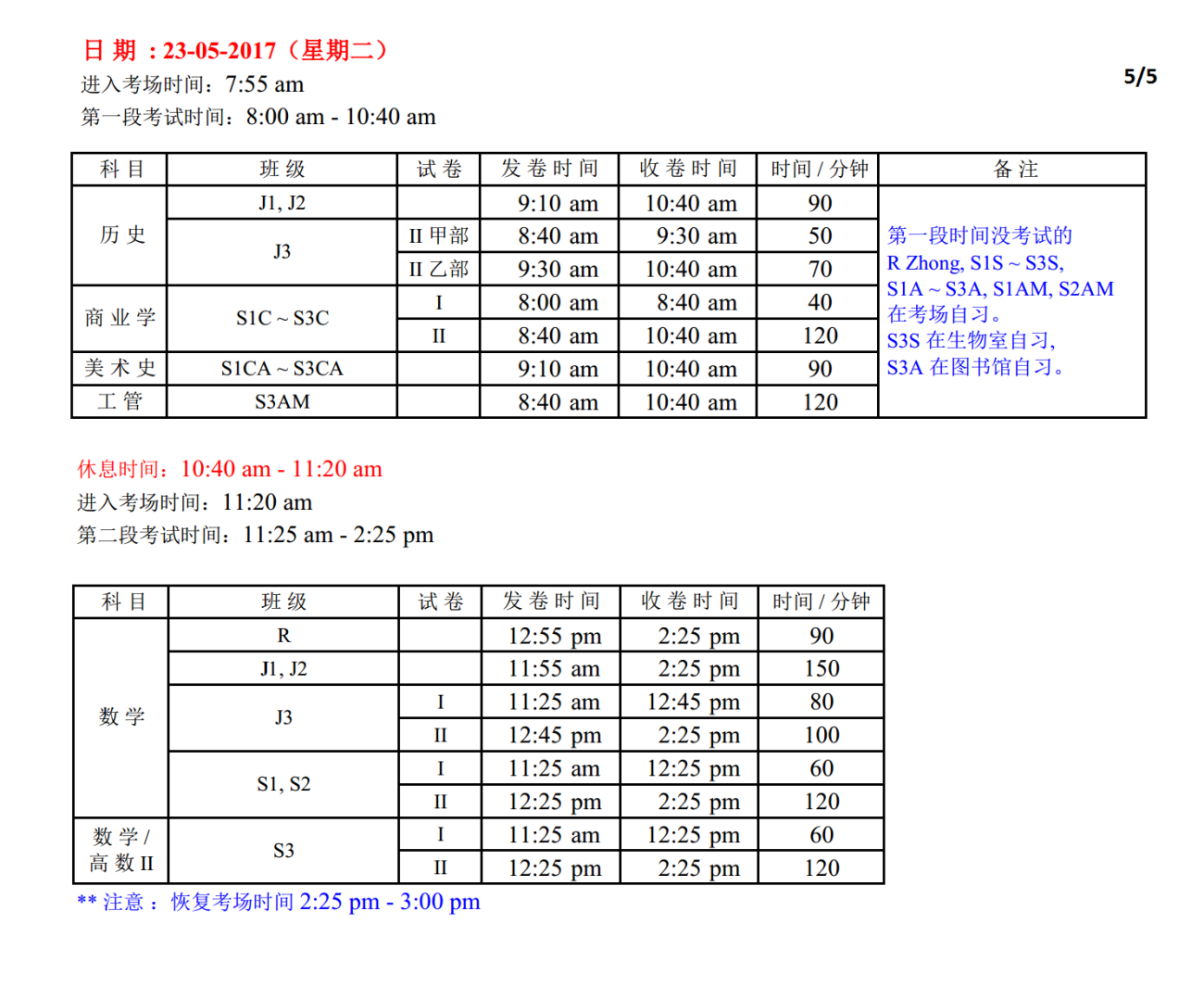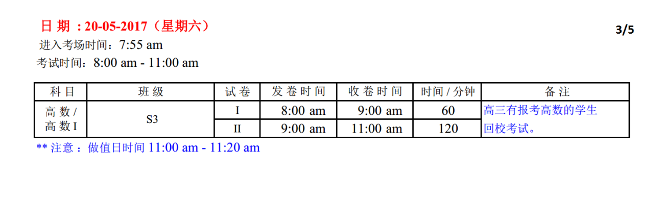 注:5月20日(星期六)只有报考高数(I)及高数的高三同学须回校与考。