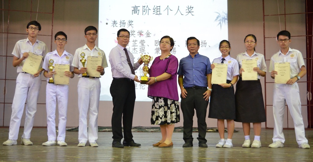在中阶组(初中三和高中一)的比赛方面,谭梧权获得第二名、叶晋玮获得第五名、林永杰获得第七名、潘伟轩获得第九名,而优胜奖得主则有黄锦铭、陈嘉仪、刘懿萱、张宇慷、陈冠延,另外尚有19名学生获得表扬奖。