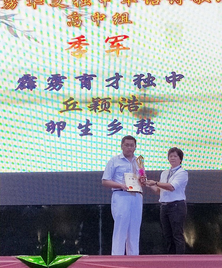 年第四届全霹雳华文独中华语诗歌朗诵比赛:高中组 季军