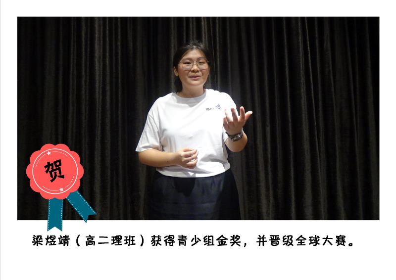 校方在此恭喜获奖的同学,也希望梁煜靖同学再接再厉,为学校争取最高的荣誉,同时也感谢纪瑞芬老师的指导和培训。