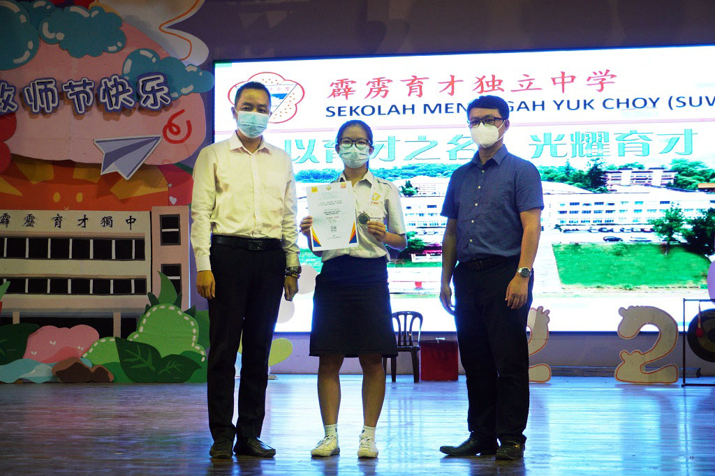 本校高三理学生潘清霞,日前参加第二届周桐暨王家式老师周王杯传统武术邀请赛(网络赛),夺得银牌。此项比赛由霹雳州政府社会融合与强化局主催,怡保马青文化体育会主办,霹雳近打关圣宫武术龙狮体育会协办。