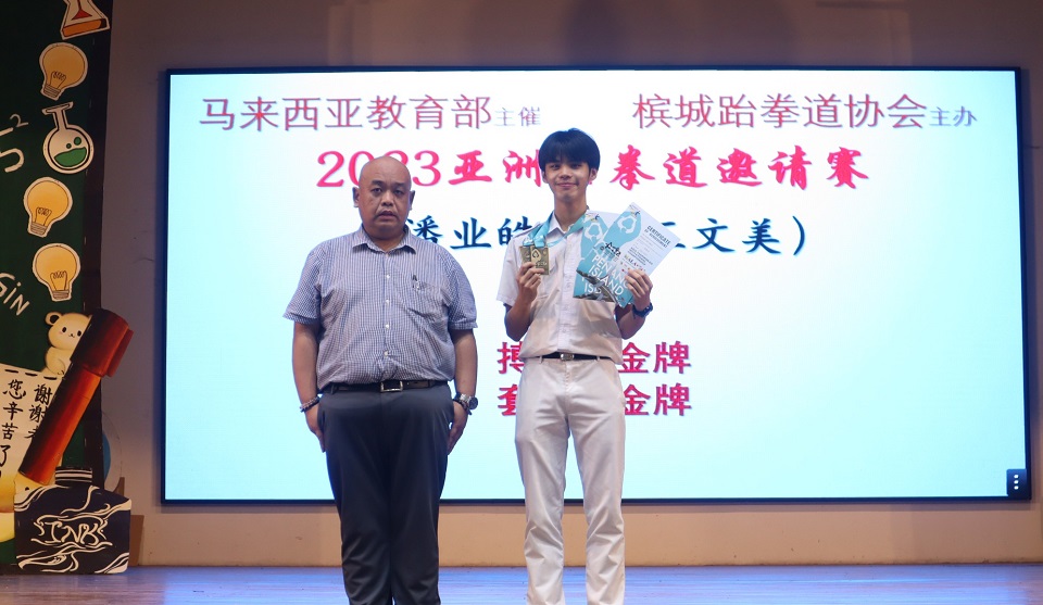 潘业皓参加2023年亚洲跆拳道邀请赛 获得搏击组和套路组冠军 本校高三文美班潘业皓同学日前参加2023年亚洲跆拳道邀请赛,荣获搏击组和套路组的冠军! 这项比赛是由马来西亚教育局主催,槟城跆拳道协会主办。黎镇光校长在周会上代颁奖和表扬潘同学,也鼓励同学们多多参与各项学术活动,以丰富学习生活的体验。他表示,参加比赛时要享受比赛过程的乐趣,在自己的学习生涯留下美好的回忆。 他也期望同学们精益求精,在喜欢的事物上要下苦功,全力以赴,经过千锤百炼,便能成为该领域的佼佼者。 |