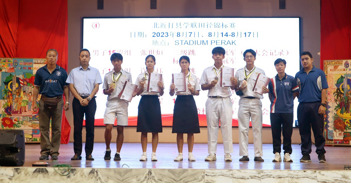 本校田径队日前参加北近打县学联田径锦标赛 (Kejohanan Olahraga MSSD Kinta Utara Tahun 2023) 并获得亮眼的成绩,其中高三文美班的何家程和初三孝班的张世烜分别在18岁组110米跨栏和15岁组三级跳项目中打破大会纪录!