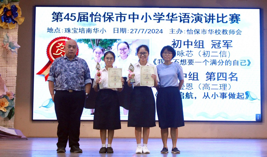 本校初二信班的刘咏芯和高二理班的李瑩恩,在第45届怡保市中小学华语演讲比赛分别夺得初中组冠军和高中组第四名!