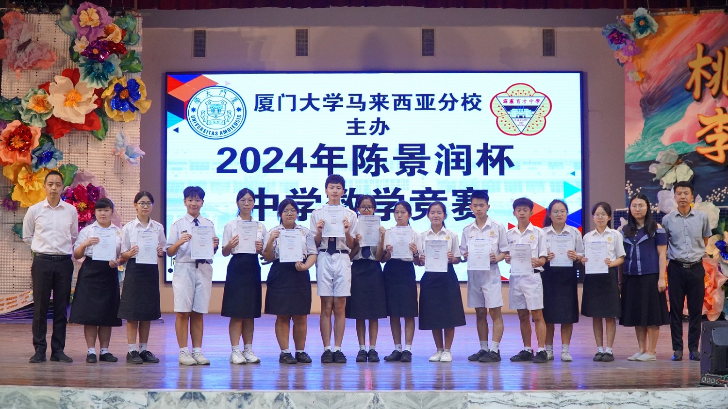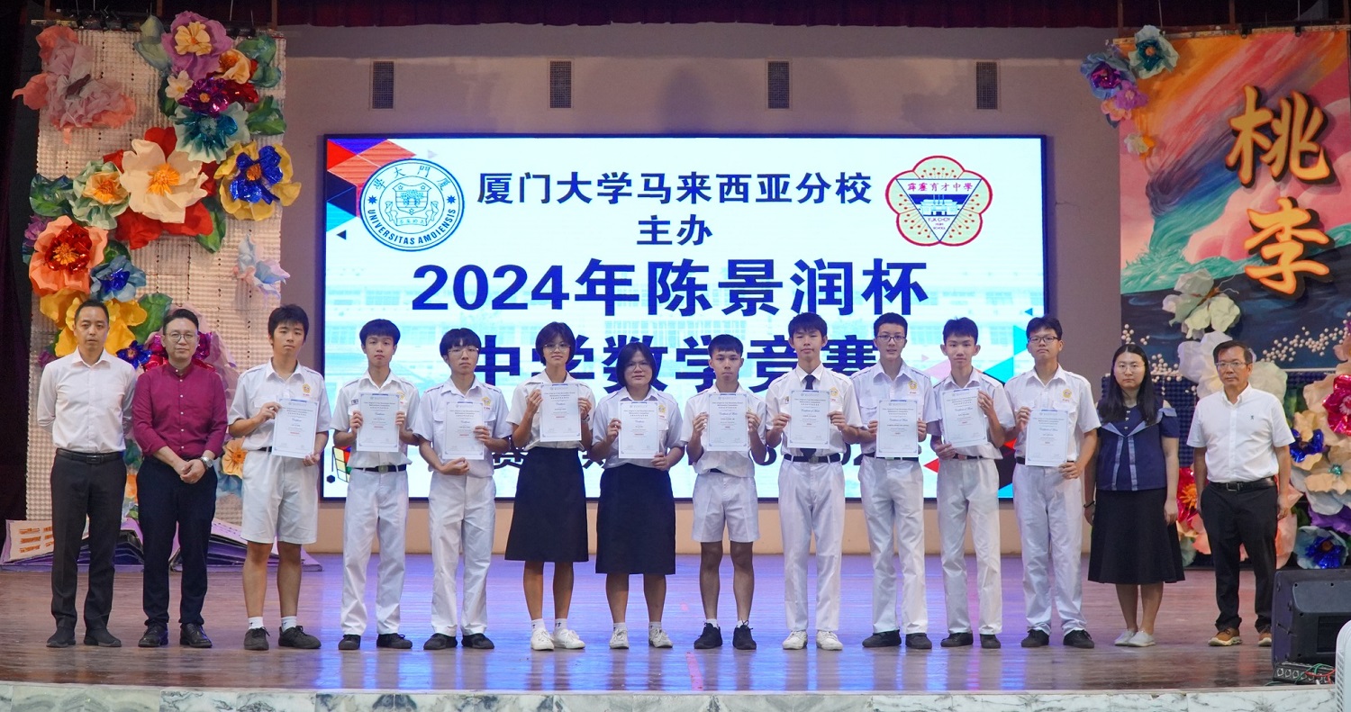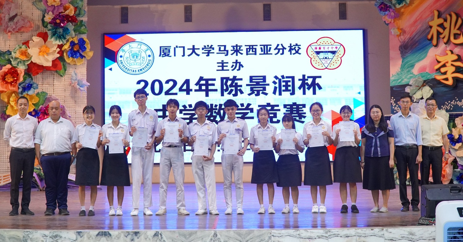 由厦门大学马来西亚分校主办的“2024年陈景润杯中学数学竞赛”日前揭晓成绩,本校1位学生获得优秀奖、10位学生获得表扬奖及22位学生获得熟练奖。