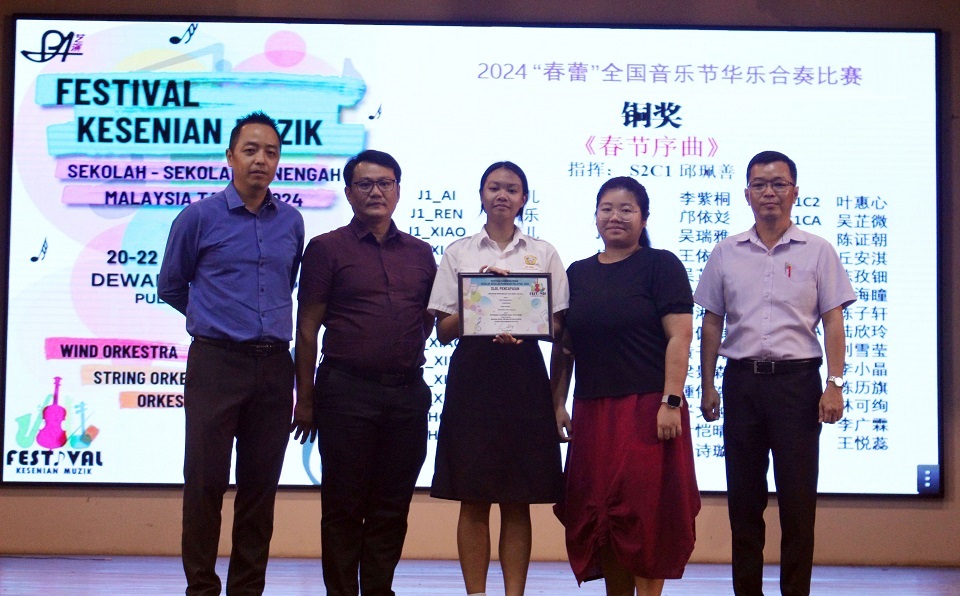 本校华乐团日前在第十四届“春蕾”全国音乐节华乐合奏比赛中凭藉《春节序曲》荣获铜奖。比赛是在槟州大会堂举行,来自上海的王永德教授、北京的高扬教授与台湾的欧光勋教授担任评委。
