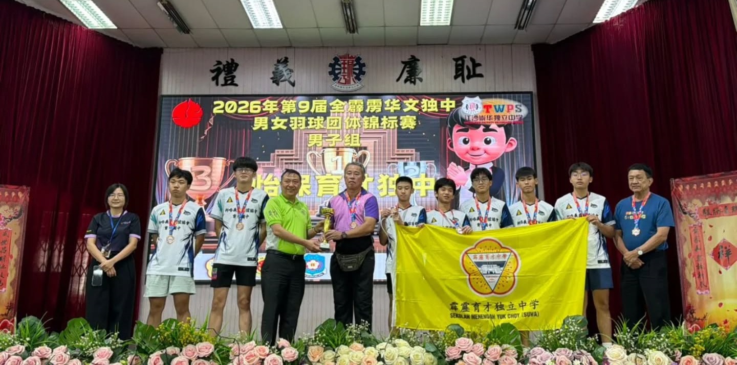 恭喜本校羽球队于“2026年第9届全霹雳华文独中男女羽球团体锦标赛”中,获得女子组冠军及男子组季军。