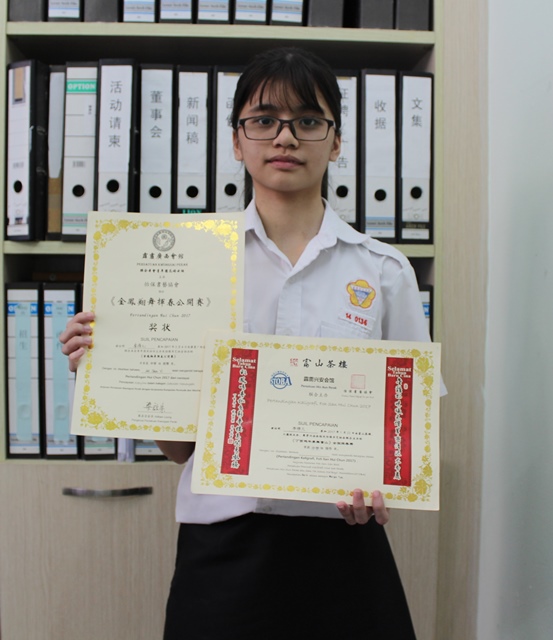 高一商1的李倩儿参加校外挥春比赛,获得佳绩。