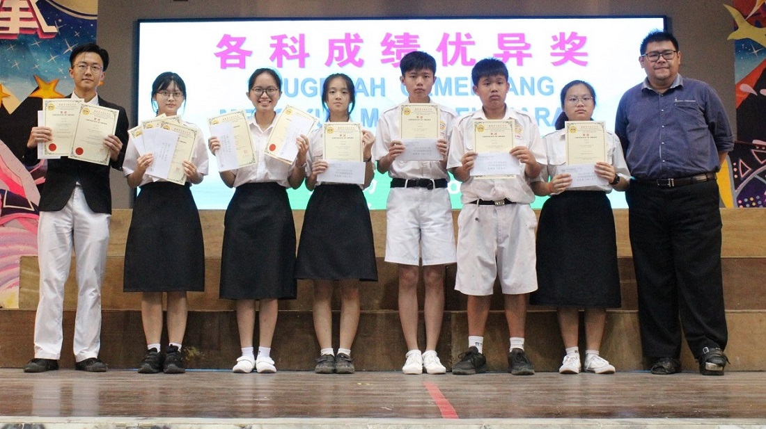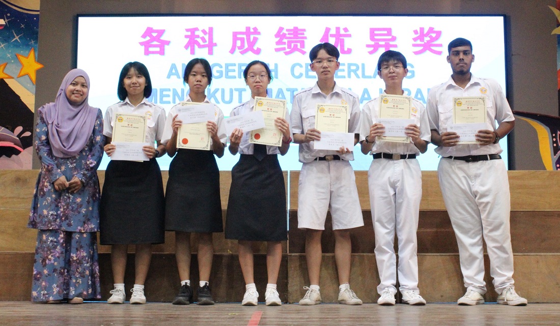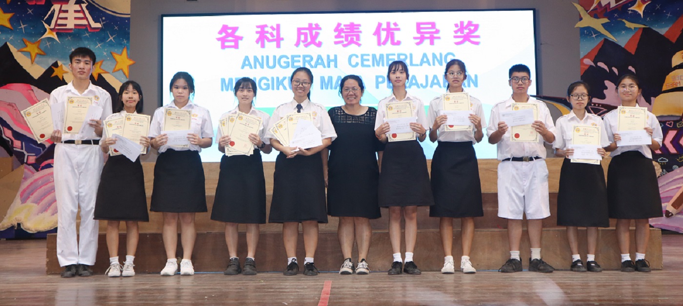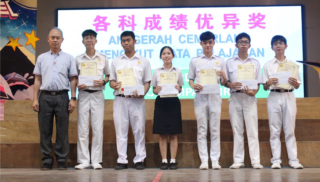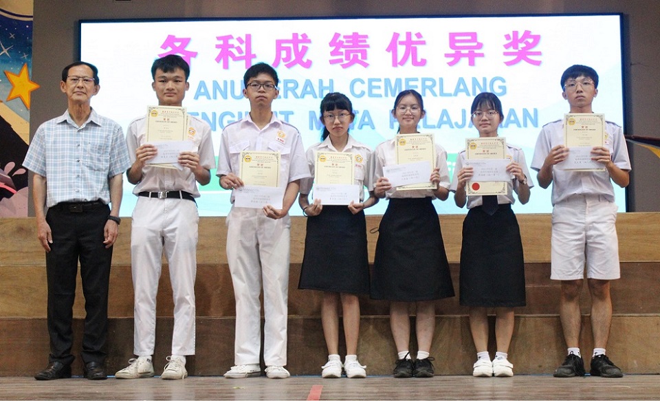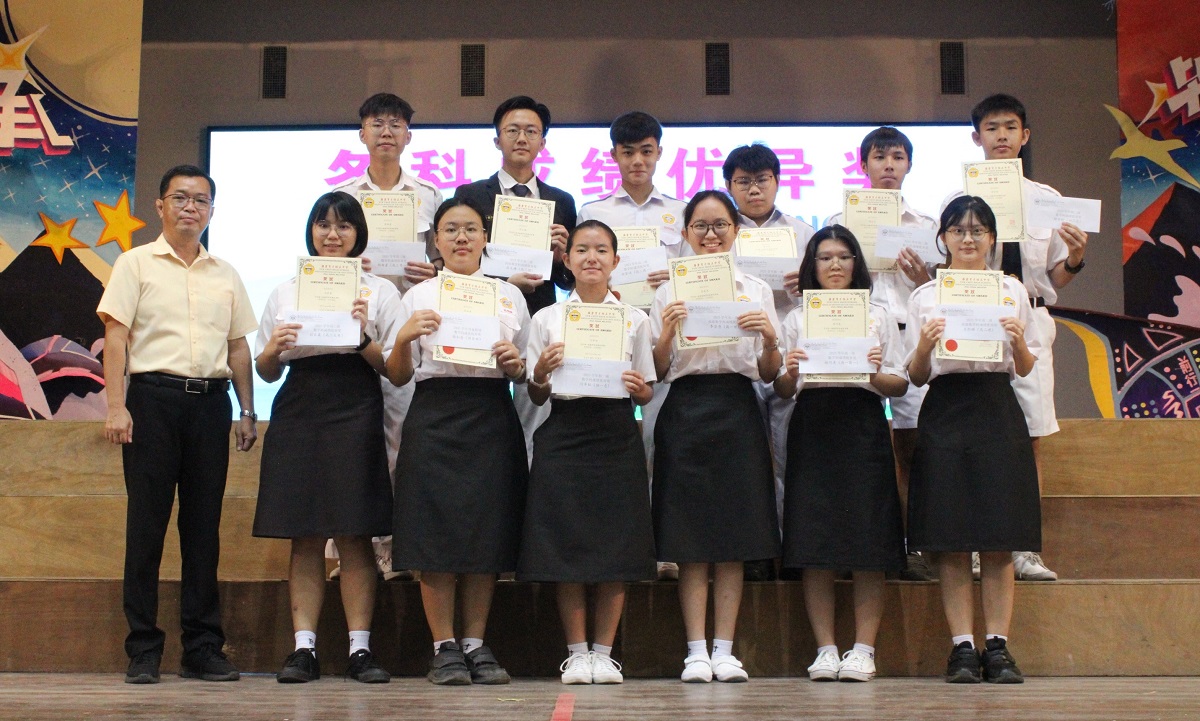 2024年各科成绩优异奖 【 初 中 华 文 】 黄家渲(初一爱)、刘宜欣(初二忠)、黄家瑜(初三仁)、刘捷轩(初三仁) . 【 高 中 华 文 】 陈鸿策(高一理)、张心宇(高二商1)、邓悦恩(高三理) . 【 初 中 马 来 西 亚 文 】 蔡凯铭(初一爱) 、黄雯惠(初二忠)、黄家瑜(初三仁) . 【 高 中 马 来 西 亚 文 】 蔡镓情(高一理)、陈子轩(高二商1)、张荔嫣(高三理) . 【 初 中 英 文 】 张紫慧(预备班)、黄家渲(初一爱)、谭悦欣(初二忠)、胡湘瑶(初三孝) . 【 高 中 英 文 】 苏子祺(高一理)、苏怡芊(高二商1)、郭俊彦(高三商1) . 【 初 中 数 学 】 许正晟(预备班)、翁以琳(初一爱)、张渝谦(初二信)、刘捷轩(初三仁) . 【高 中 数 学、高 级 数 学 】 黄拔政(高一理)、吕俊辉(高一商2)、吴芷微(高一文美)、 李瑩恩(高二理)、林梓康(高二商1)、黄玮民(高二文)、 刘家靖(高三商1)、刘采霖(高三文美) . 【 初 中 科 学 】 黄家渲(初一爱)、陈正杰(初三仁) . 【 高 中 生 物 】 李瑩恩(高二理)、邓悦恩(高三理) . 【 高 中 化 学 】 贝玮棋(高一理)、李瑩恩(高二理)、王凯琳(高三理) . 【 高 中 物 理 】 黄拔政(高一理)、李瑩恩(高二理)、王凯琳(高三理) . 【 初 中 历 史 】 李雪瑶(初一爱)、林凯欣(初二爱)、吴沁而(初三仁) . 【 高 中 历 史 】 许恩璇(高一商2)、张心宇(高二商1)、黄詠健(高三商1) . 【 初 中 地 理 】 黄家渲(初一爱)、闫辛钰(初二忠)、黄家瑜(初三仁) . 【 高 中 地 理 】 陆宥嘉(高一商1)、张心宇(高二商1)、黄詠健(高三商1) . 【 高 中 商 业 学 】 许恩璇(高一商2)、陈子轩(高二商1)、刘家靖(高三商1) . 【 高 中 簿 记 】 梁 旭(高一商1)、陈子轩(高二商2)、黄毓铭(高三商2) . 【 高 中 汽 车 维 护 】 张伟谦(高二汽修)、郑浩俊(高三汽修) . 【 高 中 汽 车 维 护 ( 实 习 ) 】 王声祖(高一汽修)、张伟谦(高二汽修)、郑浩俊(高三汽修) . 【 初 中 美 术 】 洪煜龙(预备班)、梁巧璇、彭愉恩(皆初一仁)、刘 襄(初二忠)、锺燕怡(初三仁) . 【 高 中 美 术 】 黄榆恩(高一文)、曹鑫慈(高二文)、温庆柔(高三文) . 【 高 中 彩 色 绘 画 】 张恺恩(高一文美)、吴妍怡(高二文美)、李善惠(高三文美) . 【 高 中 素 描 】 郑铱汶(高一文美)、吴妍怡(高二文美)、李善惠(高三文美) . 【 高 中 平 面 设 计 】 张恺恩(高一文美)、吴妍怡(高二文美)、李善惠(高三文美) . 【 高 中 水 墨 画 】 吴妍怡(高二文美) 2023年各科成绩优异奖