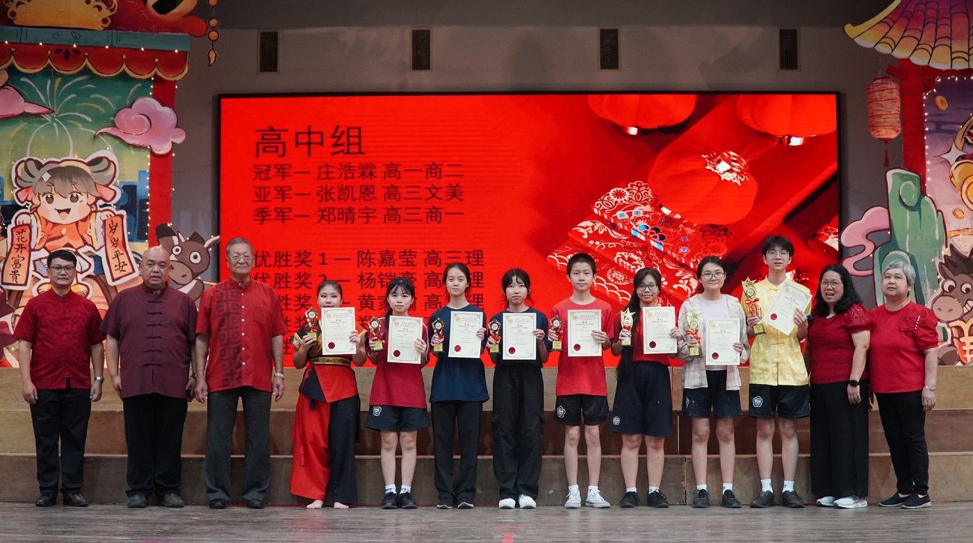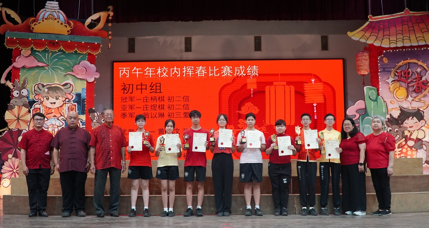 2026年校内挥春比赛得奖名单 【 初 中 组 】 冠军:庄柄棋(初二信) 亚军:庄煜棋(初二信) 季军:翁以琳(初三爱) 优胜奖:黄舜汶(初二信)、刘珂柔(初三爱)、林可儿(初二信)、谢家恩(初二孝)、黄添佑(初二信) 【 高 中 组 】 冠军:庄浩霖(高一商二) 亚军:张凯恩(高三文美) 季军:郑晴宇(高三商一) 优胜奖:陈嘉莹(高三理)、杨铠豪(高一理)、黄家瑜(高二理)、郑晴之(高二文)、蔡镓情(高三理) |