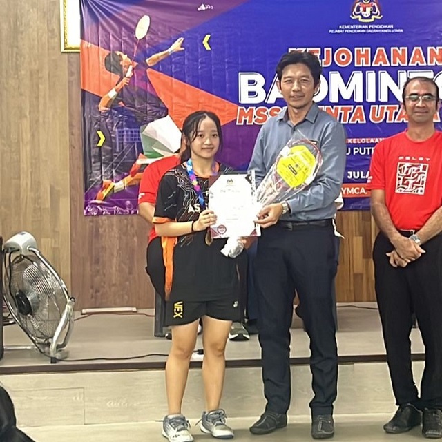 2024年北近打县学联(MSSD Kinta Utara)羽球锦标赛 Kejohanan Badminton MSSD Kinta Utara Tahun 2024 日期:7月2日至7月5日 地点:Arena Badminton YMCA 黄文熙(高二商2):18岁男子组 季军 吴紫绮(高一文):18岁女子组 冠军 梁靖儿(高二理):18岁女子组 季军 廖可儿(初三忠):18岁女子组 第4名 (照片由体育处提供)