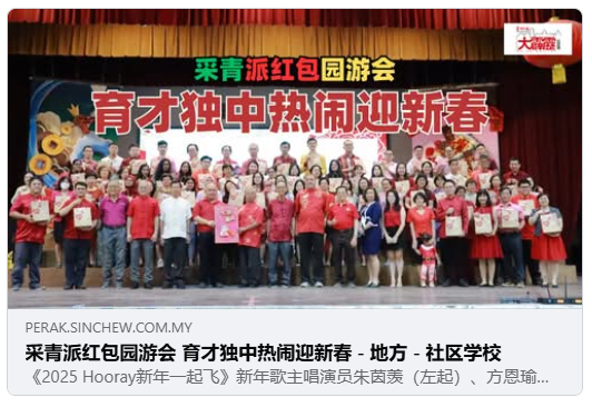 感谢《星洲日报大霹雳》的“2025年乙巳年校内迎春会”报道。 乙巳年校内迎春会