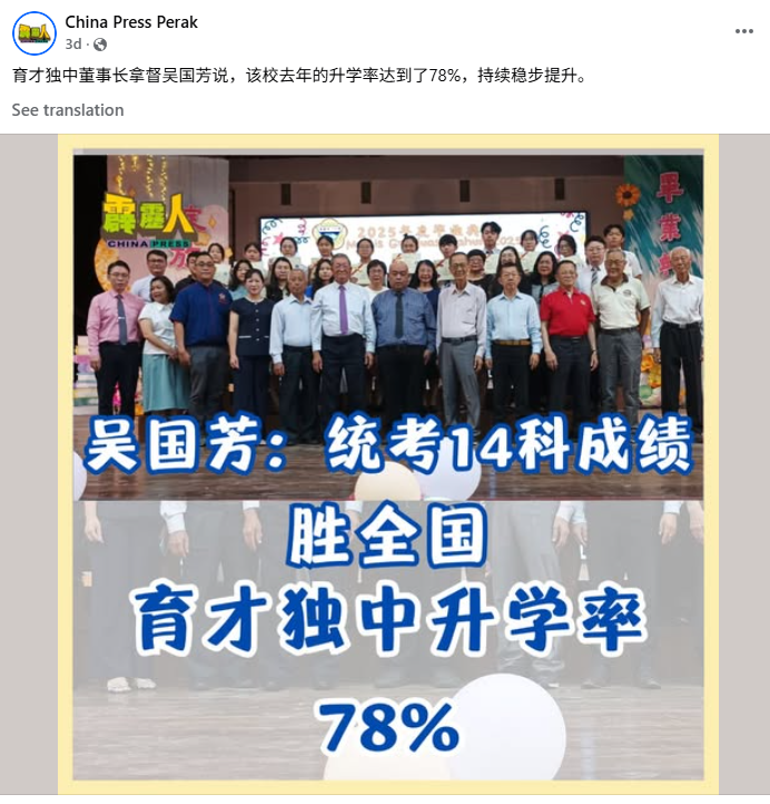 感谢《中国报霹雳人》的 “2025年毕业典礼《绽放》” 报道。 新闻链接:https://perak.chinapress.com.my/?p=260214 校园添新壁画