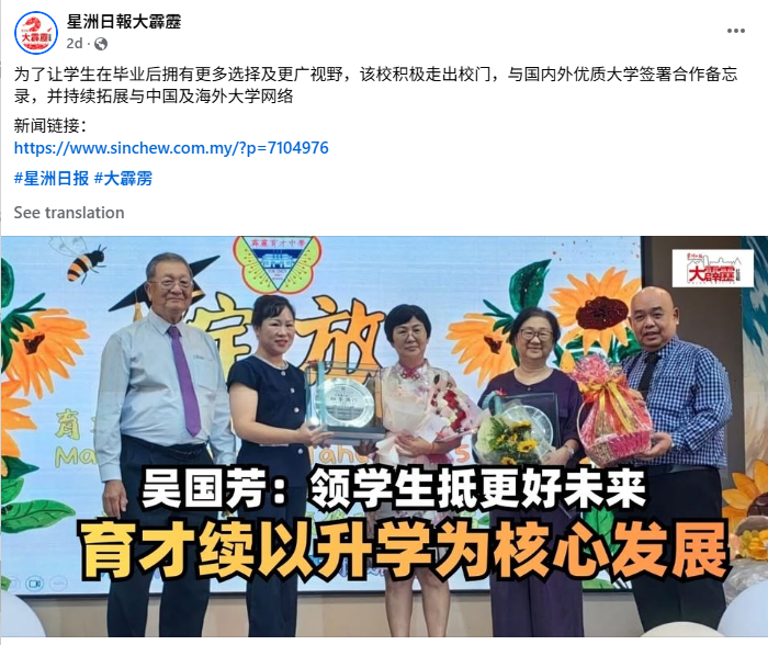 感谢《星洲日报大霹雳》的“2025年毕业典礼《绽放》”报道。 《中国报霹雳人》报道:2025年毕业典礼《绽放》
