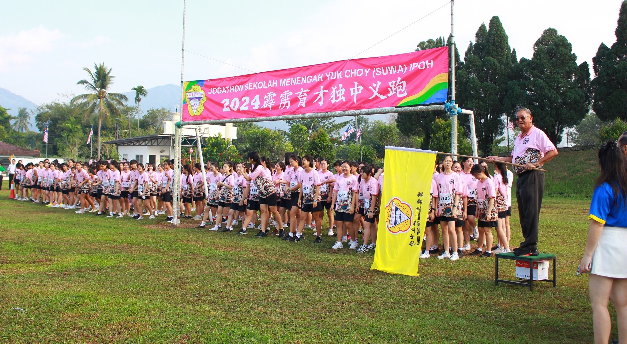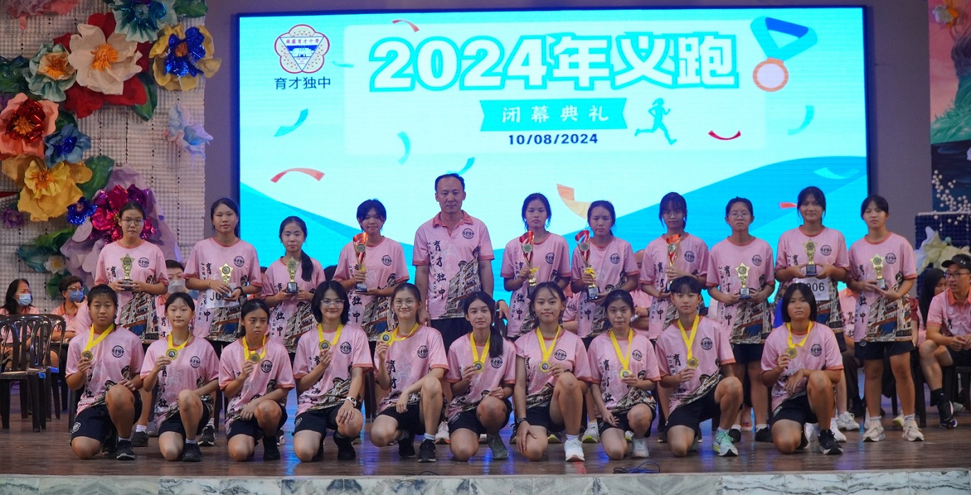 2024年义跑 2024年8月13日发布 本校于8月10日(星期六)举行2024年义跑活动,为学校筹募发展基金,全校师生精神抖擞在李氏基金运动场集合,期望在竞赛中争取最高荣誉。 董事长拿督吴国芳致词表示,今年义跑筹募的是教育发展基金,以作设立奖学金或助学金之用,帮助那些经济困难但学业优秀的学生,确保他们能顺利升学,继续接受高质量的教育;同时也可以用于教师培训和专业发展项目,帮助教师提升教学技能和知识。 他代表董事会感谢大家拨冗出席本校举行的年度校内义跑活动,并表示籍此活动,可以增强学校与校友、家长以及社区的联系,协助校方更广泛地向大众展示学校的办学理念和校园文化底蕴,提升学校的知名度和影响力。 他相信,通过组织义跑活动,不仅能提高大家的身体素质,更能增强学校团队的凝聚力。义跑竞赛不仅是追求个人的最佳成绩,更要关注团队的协作和共同成长,无论是参赛选手还是默默支持的后勤人员,大家都是义跑活动中不可或缺的一部分。 黎镇光校长致词表示,义跑不仅是一次体育锻炼,更是一次凝聚力量、传递爱心的盛会。本校自成立以来,不断地发展壮大,离不开各位董事、家长、校友、老师和学生的共同努力和支持,大家齐心协力,为共同目标而奔跑,让人感到无比自豪和欣慰。 他感谢全体教职员生的合作,还要特别感谢所有参与义跑的董事、家长、校友、老师和同学们,因为大家的积极参与和热情支持,将激励更多的人加入,为华文教育事业贡献一份力量。 他相信,通过这次义跑活动,既能增强体魄,还能加深彼此之间的感情,让校园更加温馨和谐。同时,他也希望大家能够把义跑的热情和精神带到今后的学习和工作中,为实现目标而不懈努力。 体育处主任王英健致闭幕词表示,今年的义跑公开组获得许多人士参与,并且大会在义跑活动前安排了集体热身操环节,透过轻快的音乐大家众乐乐,拉近彼此关系;最后,他也感谢教职员为义跑活动效力及积极参与。 2024年义跑竞赛成绩 【 初 中 女 子 组 】 冠军:陈苡茜(初二孝) 亚军:许睿淇(初二信) 季军:张慧雯(初二孝) 殿军:郑芷杉(初二信) 第5名至第20名: 林思諠(初二仁)、郭子潼(初三仁)、许荧洁(初二仁)、张宏萱(初二孝)、 戴菡馨(初一爱)、梁芷摇(初二爱)、杨康靖(初二忠)、廖可儿(初三忠)、 王芷晴(初三孝)、吴沁而(初三仁)、曾梓恩(初一孝)、邹羽恩(初一孝)、 李秄雂(初二忠)、王晓晴(初三仁)、彭靖涵(初二信)、侯仪涵(初二信) 【 高 中 女 子 组 】 冠军:许卉珏(高一理) 亚军:杜敏璇(高一商1) 季军:许恩慧(高二理) 殿军:吴嘉柔(高三文美) 第5名至第20名: 黎雪琪(高二商1)、郑易颖(高三文美)、萧欣霈(高三文美)、甘蔚淇(高三理)、 张颖萱(高三商1)、潘慧敏(高一商1)、霍善铃(高二商2)、黄紫菁(高三理)、 李恩馨(高二商1)、李雪绮(高二商1)、林靖芸(高二商1)、刘御菲(高二商2)、 梁芷祯(高一文)、覃佩思(高一商2)、温庆柔(高三文)、李尉绮(高一文美) 【 初 中 男 子 组 】 冠军:许文康(初三仁) 亚军:黄义权(初二爱) 季军:蔡凯铭(初一爱) 殿军:林洵愷(初三孝) 第5名至第20名: 杨立汶(初二仁)、张宏泽(初三爱)、吕伟鸿(初三爱)、黄俊圣(初三爱)、 林家齐(初三爱)、李铭曜(初一孝)、周善义(初二忠)、高建亿(初二仁)、 何汶昇(初二孝)、雷振辉(初三忠)、李倬安(初一忠)、郑棋文(初二爱)、 丘致宪(初二爱)、黄凯文(初三忠)、符廷翊(初三忠)、谢宇锋(预备班) 【 高 中 男 子 组 】 冠军:张宏毓(高三商一) 亚军:邹宇轩(高一理) 季军:刘家靖(高三商一) 殿军:黄志骅(高三理) 第5名至第20名: 沙米邓(高三文美)、黄皓檠(高一商2)、许正旸(高二汽修)、陈志雄(高一汽修)、 罗绍齐(高一商1)、贝玮棋(高一理)、张兆轩(高一商1)、许皓轩(高二汽修)、 郑智扬(高一商1)、劳梓浩(高三汽修)、区梓沣(高二商1)、黄才翔(高一文)、 黄文熙(高二商2)、陈名峰(高二商2)、陈子旻(高二理)、唐泽宇(高一理) 【 女 子 公 开 组 】 冠军:熊紫雯小姐 亚军:叶丝淣老师 季军:纪瑞芬老师 殿军:Cikgu Nadiah 第5名至第10名: 蔡雪莉老师、刘玮芊老师、吴晓杨小姐、熊翎岄老师、黄彩洁小姐、陈湄枝老师 【 男 子 公 开 组 】 冠军:尹劲帆老师 亚军:黄吉龙先生 季军:莫昌翔老师 殿军:许环伟老师 第5名至第10名: 锺誌文先生、蔡智渊先生、高文谏先生、熊志豪先生、蔡翔祥先生、张荣施老师