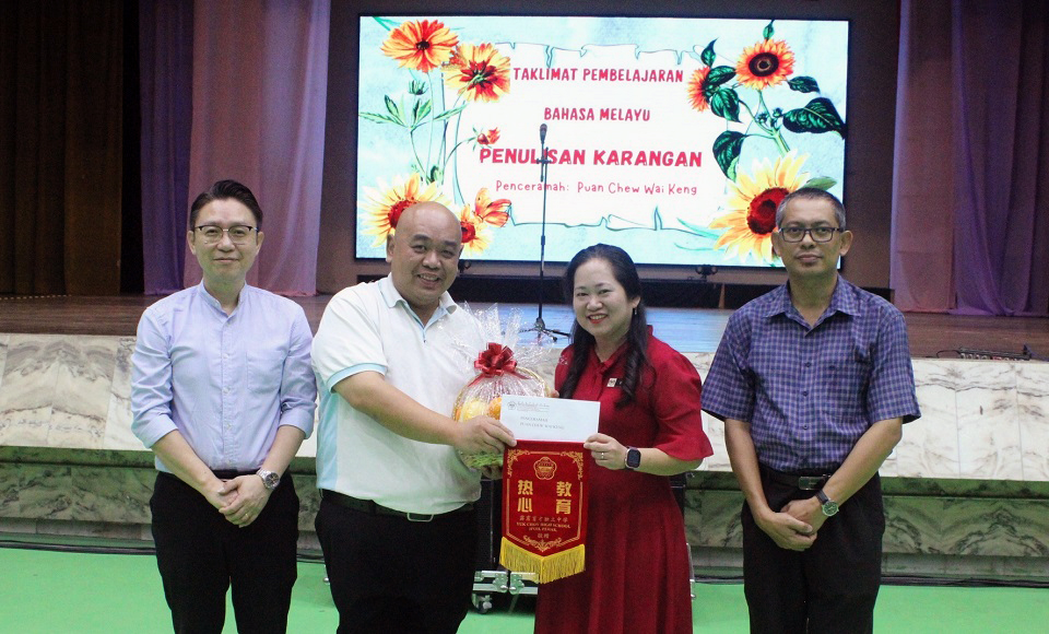 “国文作文书写”工作坊 2026年4月19日发布 本校马来文科小组于4月18日(星期六)为全体高中二和高中三的同学举办一场“国文作文书写”的工作坊,并邀请到来自SMK Perempuan Perak的赵慧琼老师到来主讲。赵老师在工作坊中向同学们讲解书写国文作文的技巧及应对马来西亚教育文凭(SPM)和统一考试(UEC)的方式。 同时,感谢厦门大学马来西亚分校赞助本校这场“书写国文作文”的工作坊,厦门大学马来西亚分校学生事务处执行员张峵玮先生也出席并且给予简短的大学宣传分享。 黎镇光校长、刘国荣副校长和马来文科主任Cikgu Azlan赠送果篮和锦旗予赵老师,感谢赵老师抽空到来分享。 2026年全霹雳华文独中篮球锦标赛:女子组冠军、男子组季军