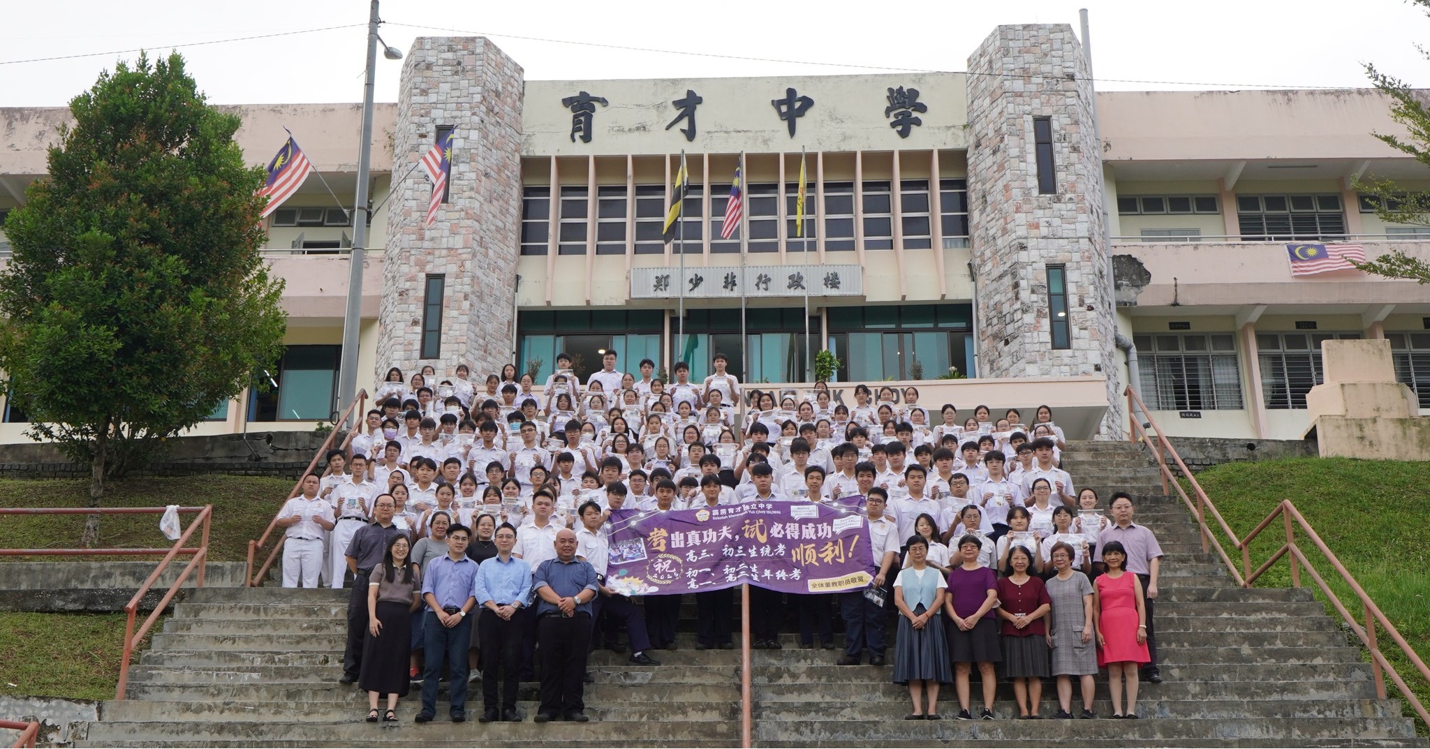为统考生加油 2025年10月22日发布 统考的脚步日益临近,统考班的同学们正全力以赴,迎接这场意义非凡的挑战。为鼓励考生们在最后阶段保持最佳状态,在辅导处的推动下,校长室携手教务主任与训育主任亲手准备并包装了一份份承载祝福的小礼物,送到每一位统考生的手中,传递温暖与力量。 同时,校方也特别感谢 AUG 及拉曼大学(UTAR)赠送的鼓励横幅,为考生们加油打气,注入满满的祝福与支持。 愿所有统考生在考场上沉着应对,笔锋生花,尽展实力;不负青春岁月,不负多年来的努力与坚持,旗开得胜,载誉而归! 本校赠送印裔教职员礼包