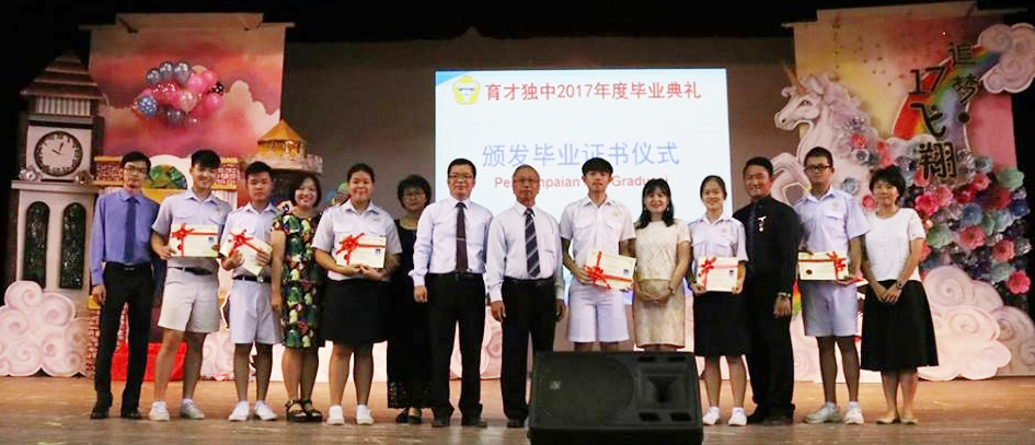 典礼上播放了初中三和高中三毕业生们自制的影片,让大家回味这几年在育才独中的点点滴滴,也让庄严的毕业典礼增添一丝的感动。