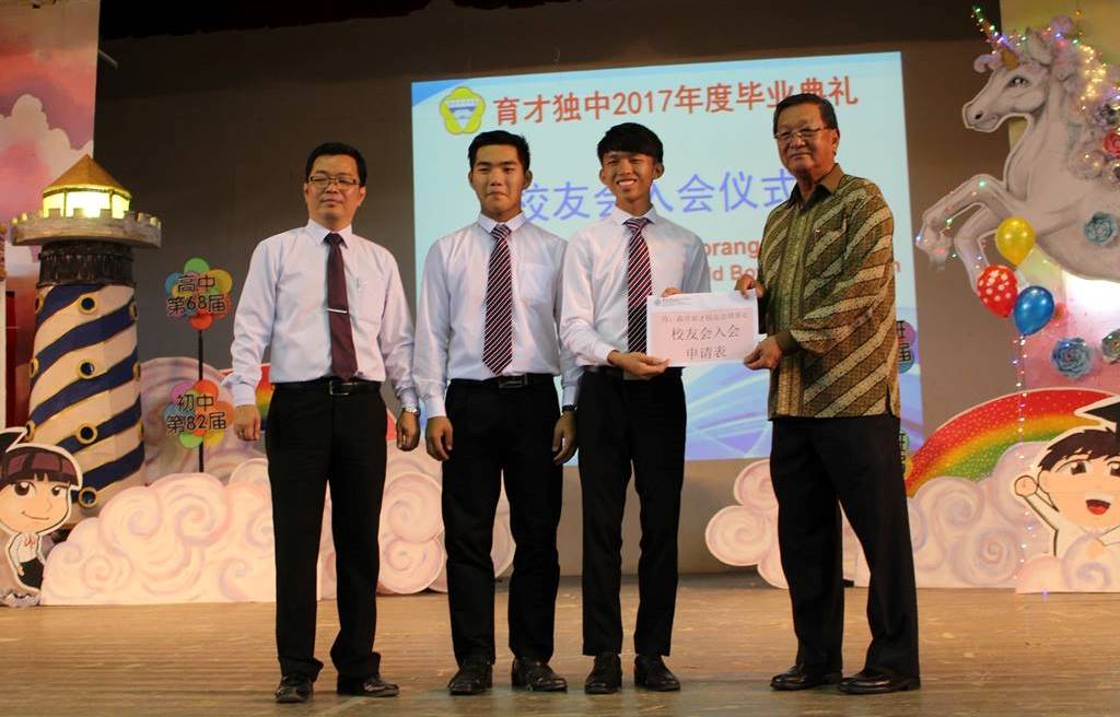 霹雳育才校友会理事长拿督吴国芳则勉励毕业生们要积极寻找心中的那一道彩虹,并把彩虹带回来母校,为母校争光。他说,毕业生们从今以后要踏入五花八门的社会,少不了会遇到风风雨雨,因此他劝勉毕业生们要勇敢坚强面对,因为除了母校以外,育才校友会也是一个强大的后盾,更是一个大家庭,能够和毕业生们一同面对风雨,度过难关。