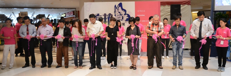 本校董事长黄亚珠(右三)主持开幕仪式,右一起美术展筹委会主席温骏业、本校校长苏民胜,