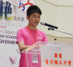 美术展筹委会主席温骏业同学致词时表示,办美术展对文美班的学生来说,意义非常重大,是一个很好的学习机会。为了办好美术展,筹委们与各方沟通和协调,互相配合及经验交流,最终同心协力把筹办工作完成,让他们获益不浅。