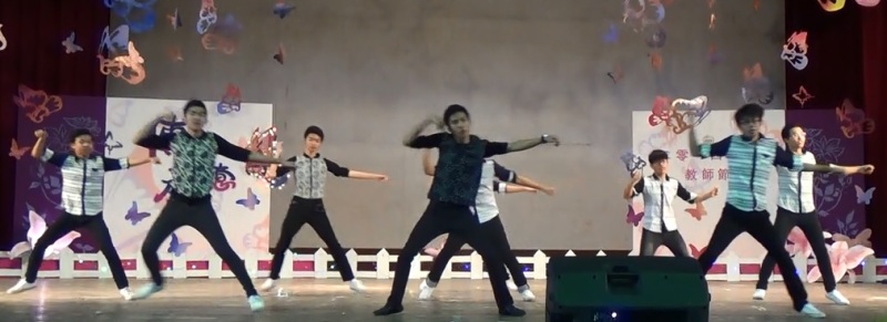 高二班学生的劲歌热舞引起尖叫声连连。