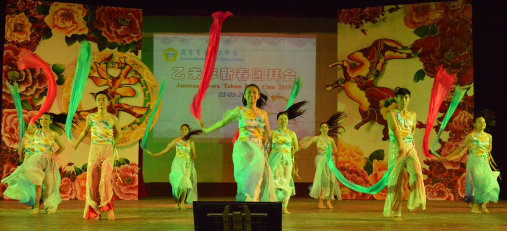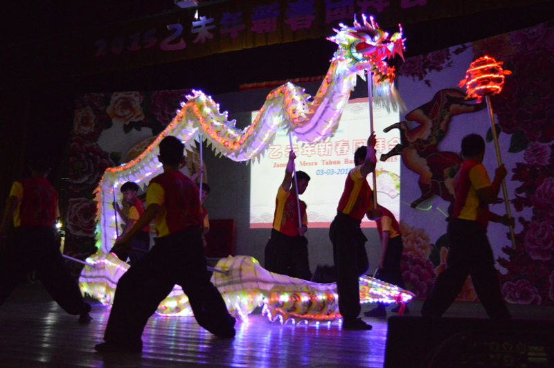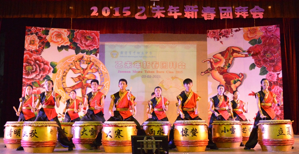本校董事会于3月3日(星期二)在杨金殿礼堂举行乙未年新春团拜会,表演节目丰富,包括挥春、二十四节令鼓、管乐演奏、歌唱、舞蹈、LED舞龙等。马来西亚国际书画联盟怡保分会会长邓启平和本校董事会总务吴章明现场挥毫。