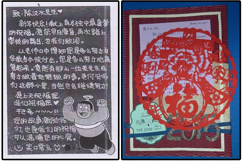 学生为陈汉水先生亲手制作的祝福卡,希望他早日康复。