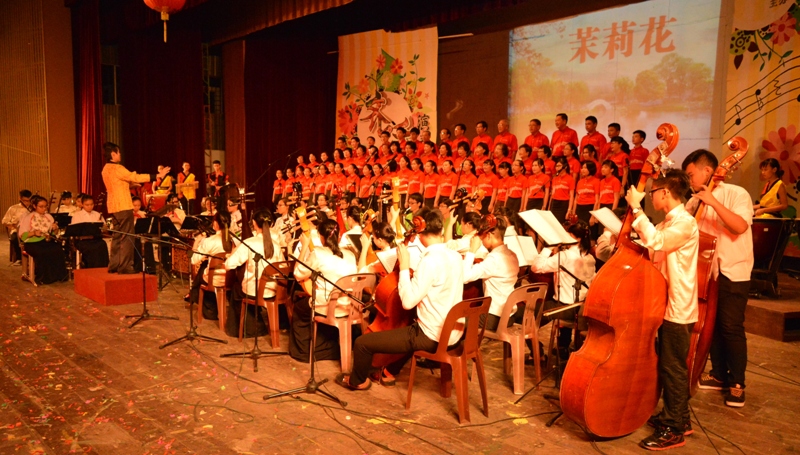 华乐团联同本校合唱团和霹雳嘉应会馆合唱团呈献歌曲。