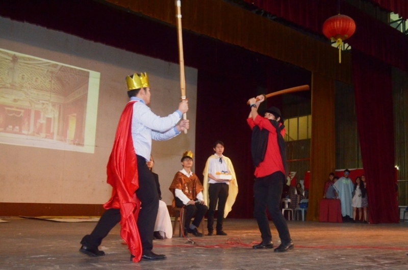 剧组演员们精湛的演技,再配合投影机播放出来的画面和背景音效,成功吸引观众们的眼球。该剧组的负责人也在中场休息时段穿插有奖问答竞赛,吸引学生上台挑战,答对问题的学生都可获得由剧组所准备的小礼物。