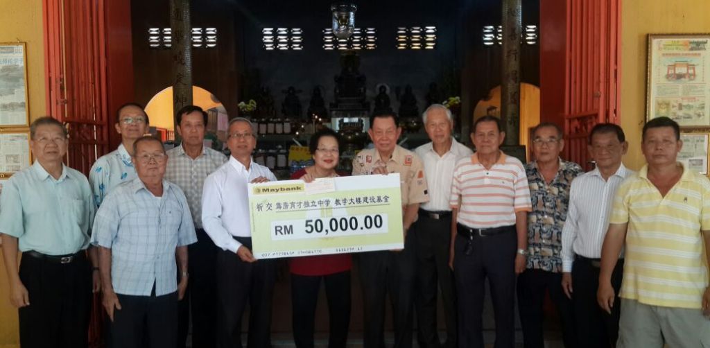 珠宝善学院日前移交5万令吉予本校教学大楼基金,本校以一间教室予珠宝善学院命名。