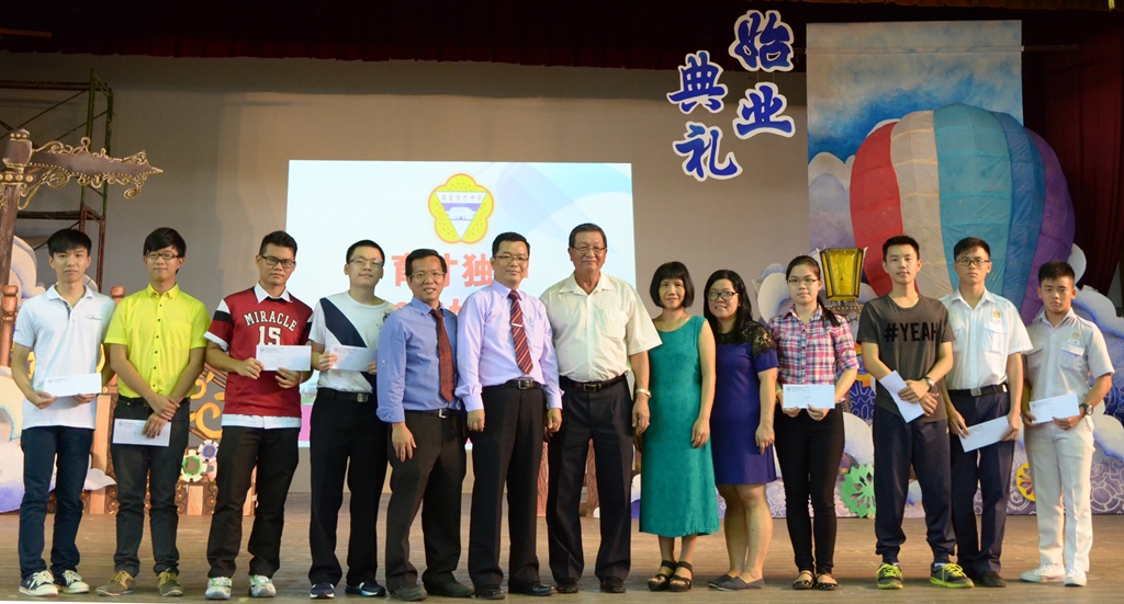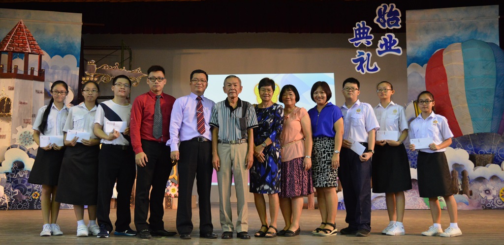 始业典礼上也进行颁奖仪式,颁发“2015年度统考成绩优异奖”、“2015年度南洋大学校友华文科书籍奖”和“2015年度教师长期服务奖”。