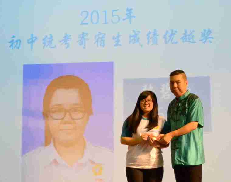 颁奖给2015年统考成绩优异的寄宿生。