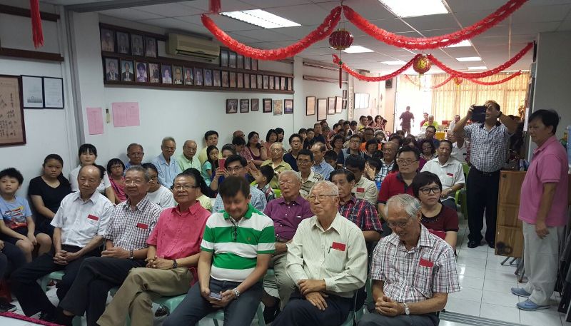 雪森彭隆霹雳育才校友会骆荣福会长致欢迎词。前排左起蔡伟正、郑大锦、关和贵、黄亚珠、吴志平、吴国芳。