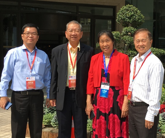 厦门大学方晓博士(右二)到厦门宾馆与育才独中代表等合照交流。左起本校苏民胜校长、董事会教育主任王瑞国,右为钟久思(沙巴)。