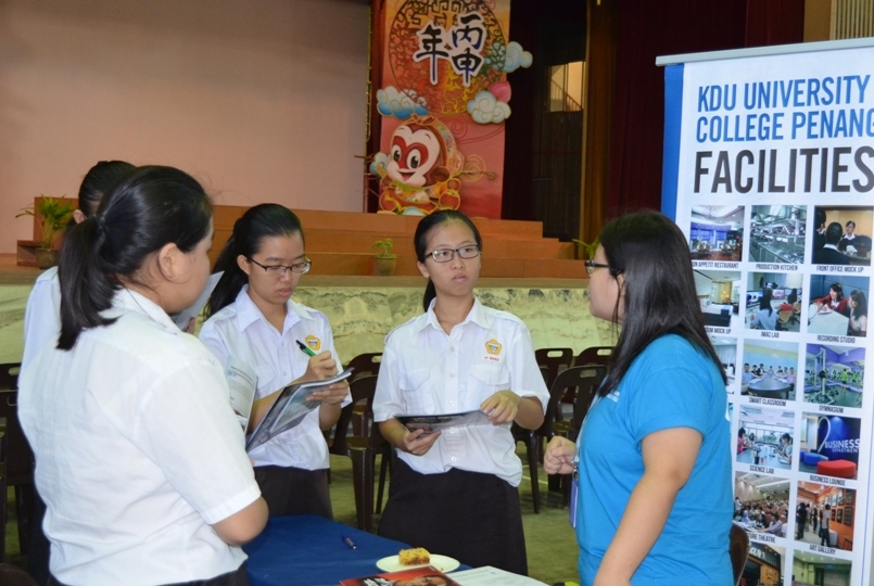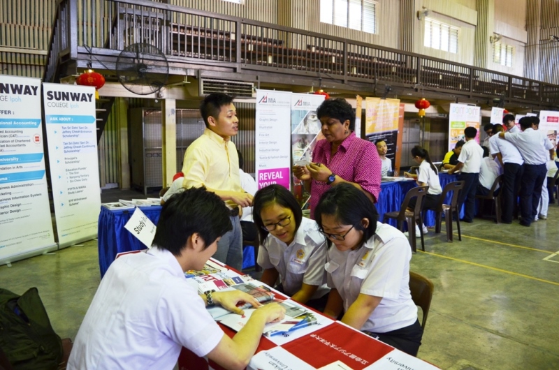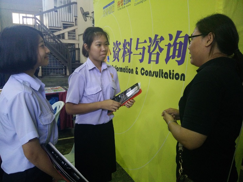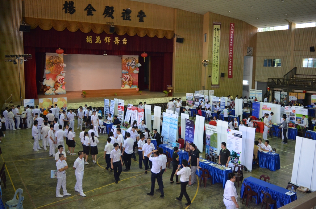 该升学展从上午9时至下午1时在本校杨金殿大礼堂举行,共有48家大专院校参展,为学生提供了包括电脑、商业、工程、法律、语文、美术设计、大众传播、酒店管理、药剂、秘书等课程,这些课程又可分为学士学位、文凭、证书、双联课程、学分转移等类别。