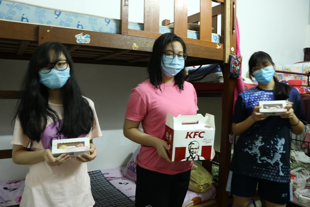2020年宿舍中秋晚会 2020年10月5日发布 本校宿舍日前举行宿舍中秋晚会,全宿舍约300名寄宿生一同欢庆佳节,舍务处主任陈世文还充当音乐DJ,让寄宿生凭点歌寄意,点播喜爱的歌曲,为疫情下的中秋节增添一点喜庆的气氛。 陈世文表示,受到疫情的影响,宿舍无法举办如往年般的大型庆祝活动,但庆祝中秋节向来是宿舍其中一项重点活动,因此只好折衷简化庆祝方式,让这个传统能够延续下去,也让孩子们知道庆祝中秋节的意义,同时,让全体寄宿生过个简单而喜庆的中秋佳节。 文:宣教处 照片:舍务处 陈世文(前排右)与宿舍自治委员们派发造型可爱的中秋月饼给全体寄宿生。 .