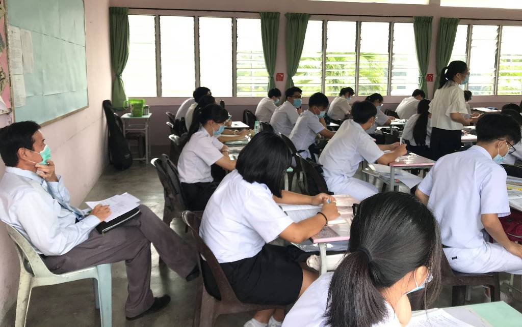 教专课程教学视察 2020年8月15日发布 由董总和台湾高雄师范大学联办的2020年教育专业文凭(教专)课程班,本校共有8名教师参与。来自董总的李斯圣博士日前到来本校,视察老师们的上课情况。参与视察的教师包括:刘玮芊(科学)、陈志文(数学)、施嘉嘉(华文)、锺微丝(体育)、林慧敏(电脑)、邹振宇(数学)、张耀荣(华文)及吴君仪(历史)。 文、照片:宣教处