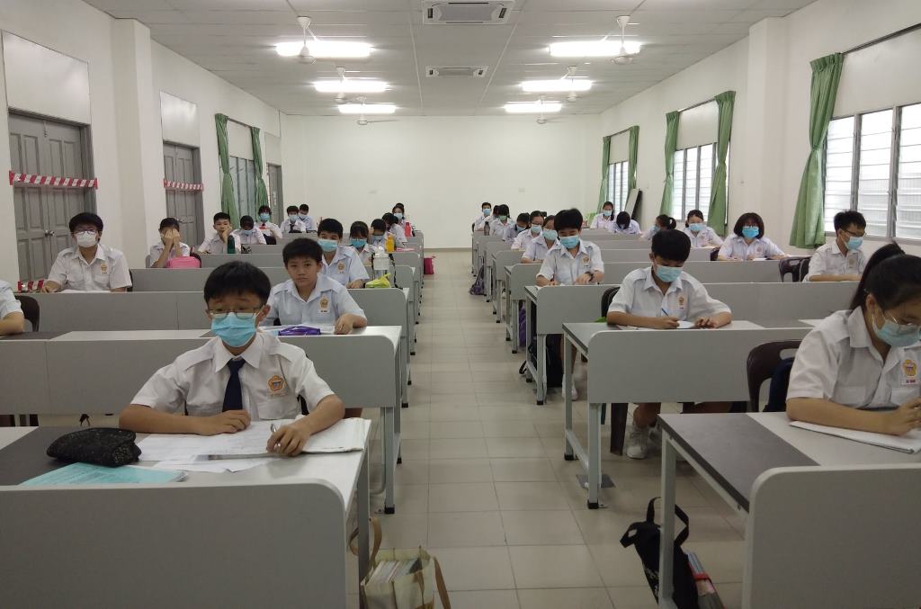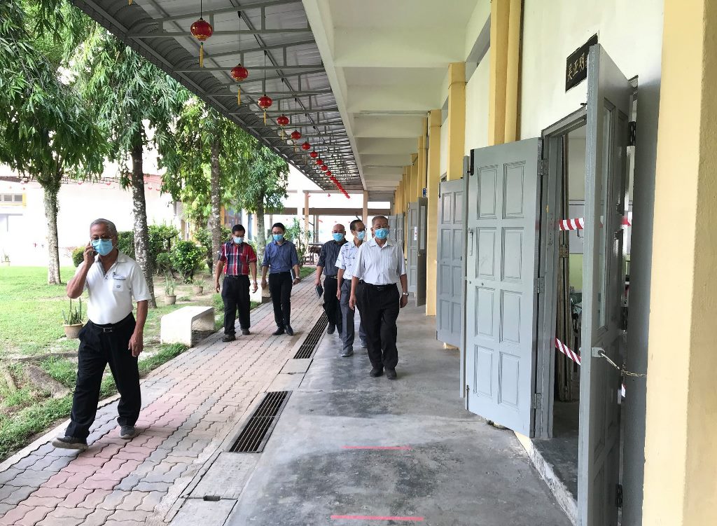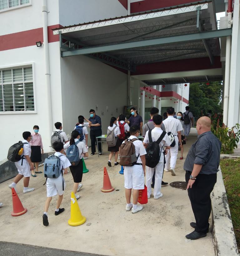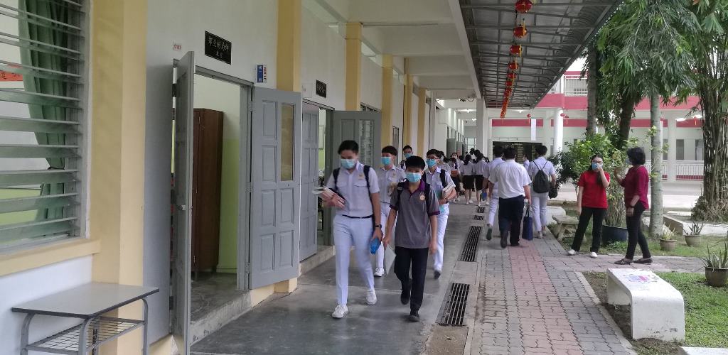 校园再次充满人气!疫情防控期间,7月15日终于迎来全校复课,值班老师每天提早到校,为全体学生测量体温。课室走廊、楼梯、大厅等地方也安排了值班老师,确保同学们根据预设的校园行走路线图,以达到复课标准作业程序。 黎镇光代校长说,本校采取第一类型复课模式,即全校学生在同一个时段上课。所幸本校拥有充足的课室,可以容纳所有学生一同上课。他说,在教育部更新了学生座位之间的标准距离后,原本需要分开两个班级上课的学生也可以在同一间教室上课,让本校有充裕的空间安排学生的地点。无论如何,黎校长也指出有些班级的人数多达40人,因此这些班级将会使用已经被打通的课室作为上课地点。 黎校长说,由于本校高三的学生已于数周前率先复课,因此在面对预备班至高二学生全面复课时也不至于手忙脚乱,各行政部门都在复课的首日完成所指定的工作,如测量体温、巡视课室、维持学生秩序等。他指出,根据训育处的统计,复课后的学生出席率超过98%,可喜可贺。 黎校长表示,学生在经过将近4个月的分离后,再次见面分外亲近是预料中事,因此他都苦口婆心劝导学生要谨记标准作业程序,不要和同学有肢体上的接触,并时刻戴上口罩,保护自己和他人。另外,休息时间时所有学生只可以在课室内享用餐点,并由值日老师监督,以免出现学生共用餐具、共桌的情况。 本校董事长黄亚珠先生、董事会总务王瑞国博士、财政黄伟生先生、副财政刘子真先生、查账张文义先生也特别在复课首天抽空到校巡视学生的复课情况,并对师生们的表现感到满意。 文、照片:宣教处