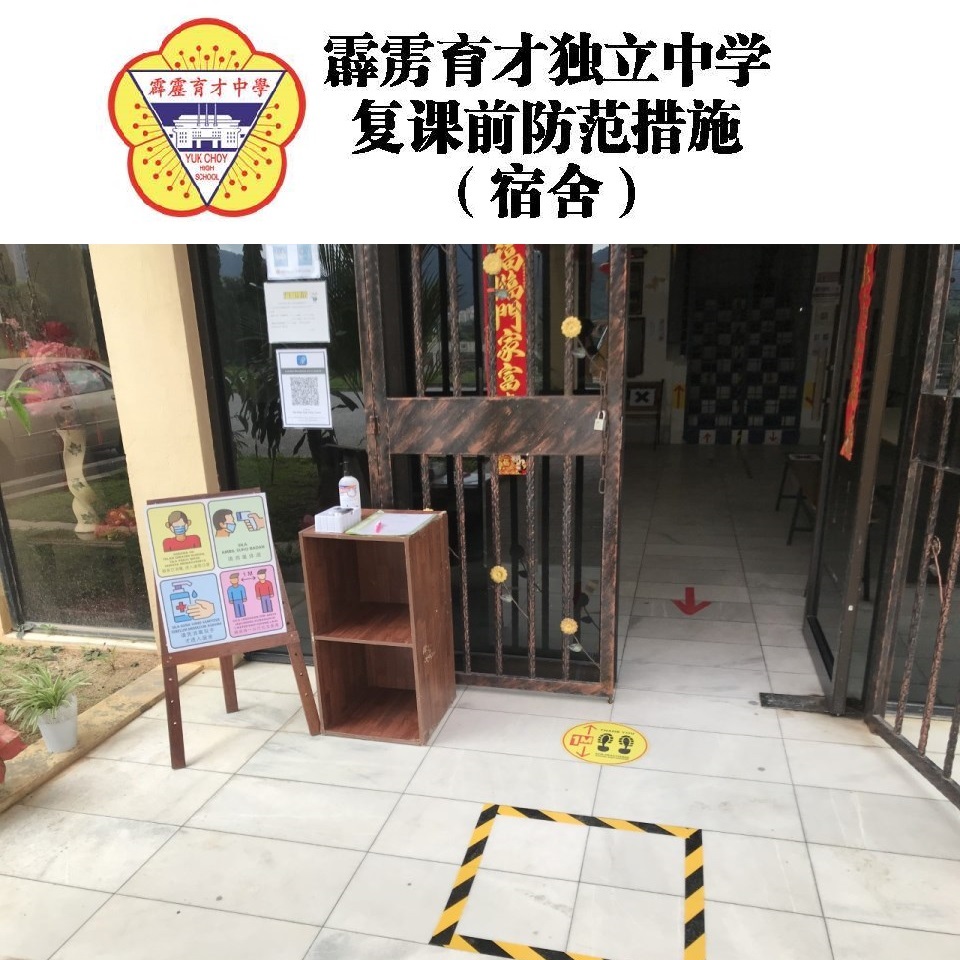 【复课防疫措施】宿舍 随着复课的日期越来越接近,本校为复课的寄宿学生和教师做好宿舍的防疫措施,让师生们能够有个安全的居住环境。除了休息场所和食堂的桌椅贴有保持社交安全距离的标示,地面上和楼梯都贴有行动路线的方向箭头标志。每个寝室只能容纳 2 人,床位也重新分配,保持距离。