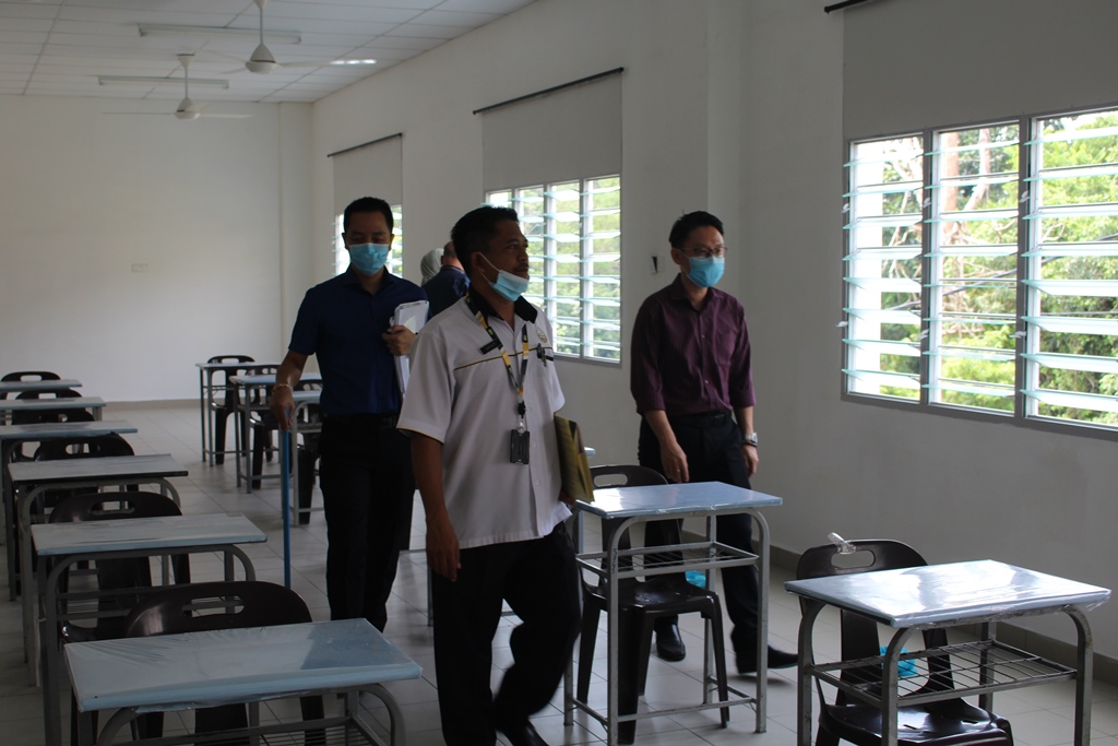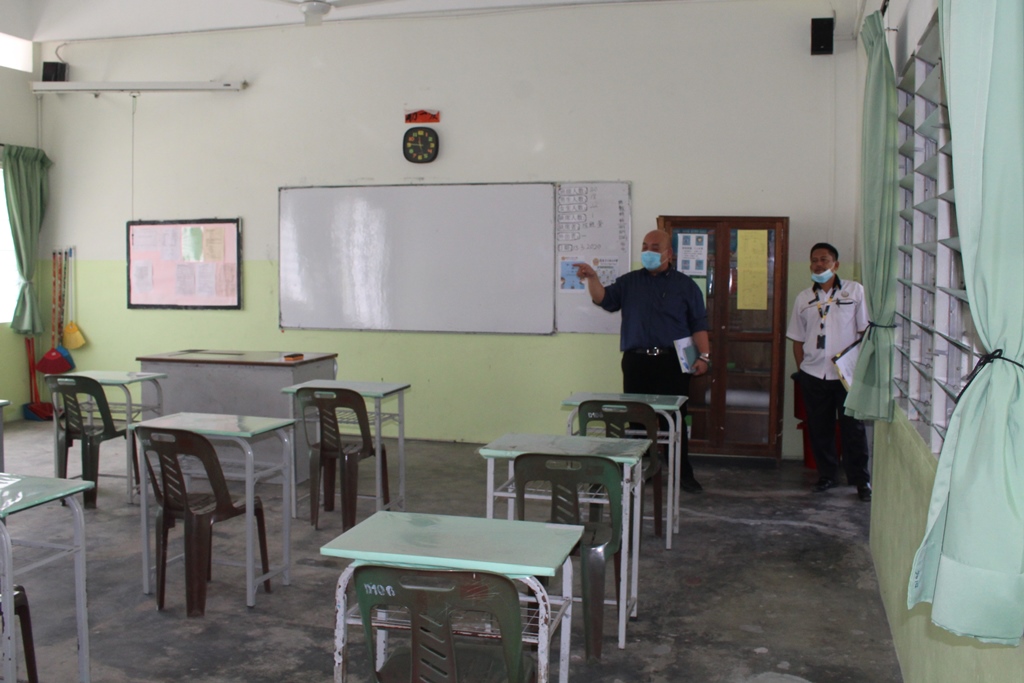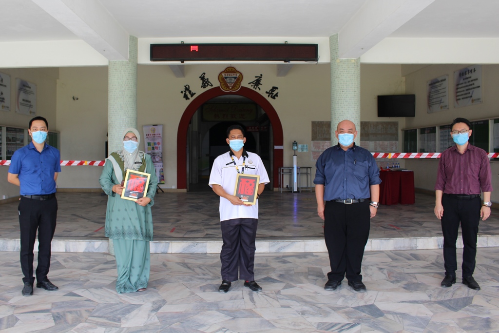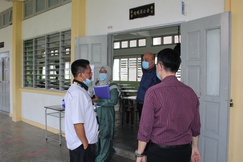 霹雳州教育局莅临本校视察 防疫措施与复课SOP获好评 2020年6月21日发布 随着复课的日期(6月24日)越来越接近,霹雳州教育局官员日前莅临本校巡视,以确保本校能够达到复课标准及如期复课,并在巡视完毕后对本校所采取的复课防疫措施给予优等的评价,可以如期复课。 到本校巡视的教育局官员为助理总监沙育迪和助理祖玛雅,他们抵达后听取黎镇光代校长的汇报,以了解本校所采取的标准作业程序(SOP),随后在黎镇光的带领下巡视校园环境、课室、洗手间、宿舍等设施。 黎镇光代校长说,本校根据教育部所颁布的复课指南制定标准作业程序,采取各种防疫措施,包括在校园范围贴上保持社交距离的公告、标示、行动路线指示箭头,以及张贴海报提醒师生遵守卫生安全指南等。 黎校长指出,本校率先复课的学生是高三生,上学和放学时间皆有调整,上课时间为每逢星期一至星期五上午8时至下午1时30分。至于其他尚未复课的班级则继续通过网络教学的方式上课。 另外,他提到课室的防疫措施,校方重新排列学生的桌椅以保持至少一米的距离,也安排专业的清洁公司到来为课室消毒。 舍务处主任陈世文表示,由于复课的高三学生也包括寄宿生,因此宿舍制定了严格的条规。宿舍将于6月23日下午2时起开始允许高三寄宿生回宿舍,进入宿舍前必须先测量体温,并限定每间寝室只允许容纳2人。他提醒寄宿生一旦发现自己或室友有发烧和喉咙痛等症状,必须马上向宿舍生活导师报告并且隔离。 参与巡视的人员还包括本校的校长助理刘国荣老师、教务处主任胡丽珍老师、训育处主任王淑媚老师、联课处活动主任朱荣熙老师、宣教处主任蔡雪莉老师。 文、照片:宣教处 【复课防疫措施】教室