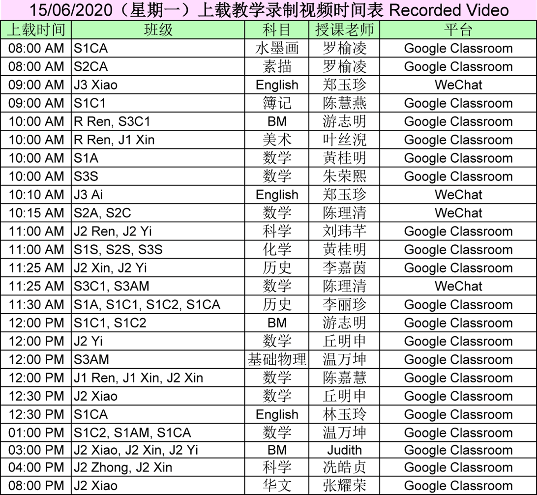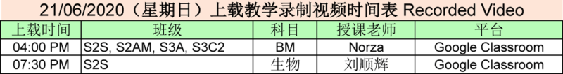 【15.06.2020~21.06.2020】“线上直播教学” 和 “上载教学录制视频” 时间表