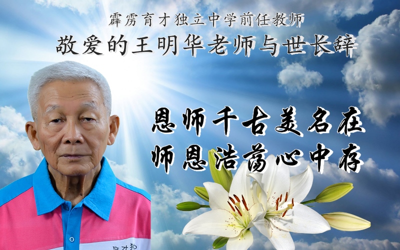 我们感恩 Mr. Wong 35年孜孜不倦的辛勤教学,对学生的关怀与鼓励,也感恩 Mr.Wong 对本校排球队的领导与训练,让本校的排球州手和国手辈出。 Mr.Wong 的付出与奉献,我们将铭记于心! 【王明华老师的教学历程】 王明华老师出生于1929年10月21日,在霹雳州华都牙也一个名为 Rotan Tahan 的小地方。 5岁那年,他在 St. Joseph 教堂念一年级,6岁搬到怡保,父亲为教堂司机。 7岁时,神父让他进入三德小学念二年级。 11岁那年因战乱停学,至1945年和平后由神父推荐进入英校 St. Michael 念书。学校先是安排他在一年级上课,随后得以连续跳级,终于在1951年顺利地考取剑桥文凭 (Senior Cambridge),并于翌年即1952年三德国民型中学成立的第一年,于1月7日开始在三德中学执教。执教期间,于周末参与和完成 Teachers of English in Vernacular Schools (TEVS) 师范课程。 在校期间,王老师除了专心教导英语,在1973年成立了三德铜乐队,并于1975年担任指导至1984年底退休为止。在三德执教的最后一年,他为三德中学编写了三德中学校歌。 值得一提的是,王明华老师也是 “全方位的教师”。 除了精通音乐之外,王老师在球类活动也贡献良多。从50年代开始,他担任霹雳州乒乓委员会委员,同时也担任霹雳州业余排球公会竞赛主任和教练,并且从1970至1984年担任霹雳州学联排球技术主任和教练。在三德服务的33年中,王老师已经培训出至少四位排球国手和众多的霹雳州州手。 王老师在1984年年底退休后,在1985年1月2日加入怡保育才独中,开始了另一段教学历程。 虽然当年已经年届56岁高龄,王老师到了育才独中仍然扮演着昔日在三德中学的角色,课余仍然教导排球至今,管弦乐队则在教导两年后由专业教练接手。 由于年事已高,而且在2005年因病小休后,王老师于2006年开始由全职教师转为兼职英语教师。即便如此,王老师坚持每天都返校教课,因为经验告诉他,学习语文不能一天打鱼,三天晒网,而需要每天复习和练习。 截至去年,王老师在育才独中已经执教超过30年,并且获得董总颁发30年的服务奖状及荣获沈慕羽教师奖。 今天,王老师已经在教育界站稳了64年,且坚毅地在育才独中课室中把毕生所学毫不保留地传授给莘莘学子。 我们会永远怀念您, 我们最爱的 Mr Wong。 愿您一路走好