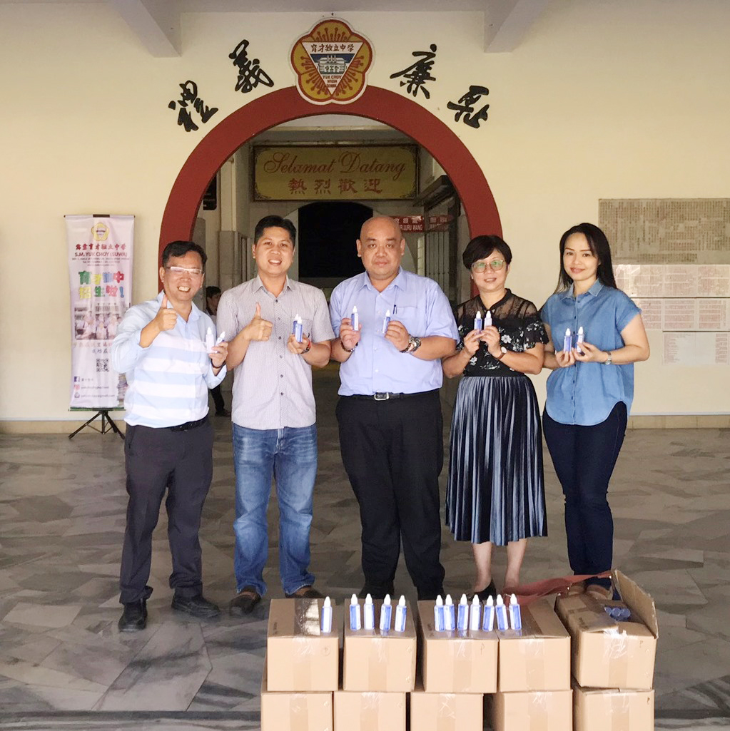 热心人士张文顺赠送搓手液予本校全体教职员生 2020年2月29日发布 热心人士张文顺秉持着“取之于社会,用之于社会”的精神,向本校全体教职员生赠送搓手液,希望师生们能时刻注意个人卫生,勤于洗手,共同对抗肺炎病毒。 他说,由于市场上的紧张情绪导致口罩和搓手液严重不足,因此他向生产商购买原料,再通过他公司的设备,自行研究和生产小瓶装的搓手液。除了方便使用外,也能避免向抬高售价的无良商家购买。 文、照片:宣教处 张文顺(左二)赠送搓手液予本校全体教职员生。 肺炎来袭,健康至上 育才独中办讲座授防范之道