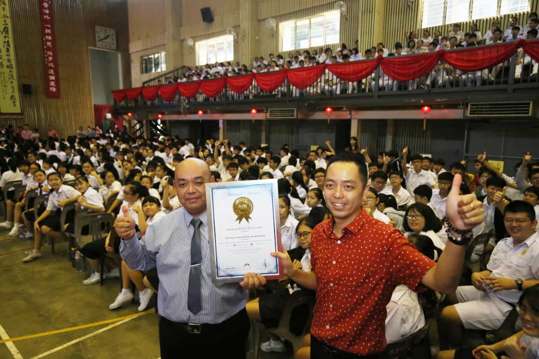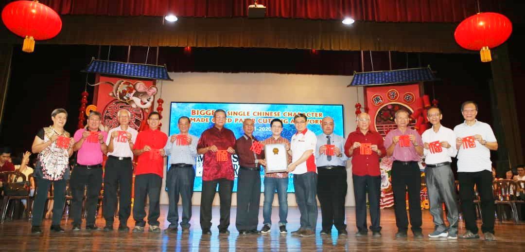 剪纸拼凑全马最大 “福” 字 列大马纪录大全 2020年1月19日发布 新春佳节来临之际,育才独中全体董教职员生继承华人的传统文化,进行艺术剪纸活动,在大家积极努力的配合下,剪出逾万张的小“福”字,终于拼凑成一个长 17 公尺、宽 17 公尺的大“福”,成功列入马来西亚纪录大全! 马来西亚纪录大全总营运长黄枫伟于2020年1月18日(星期六),前往本校验证,并把证书移交给校方,怡保东区国会议员黄家和出席见证。